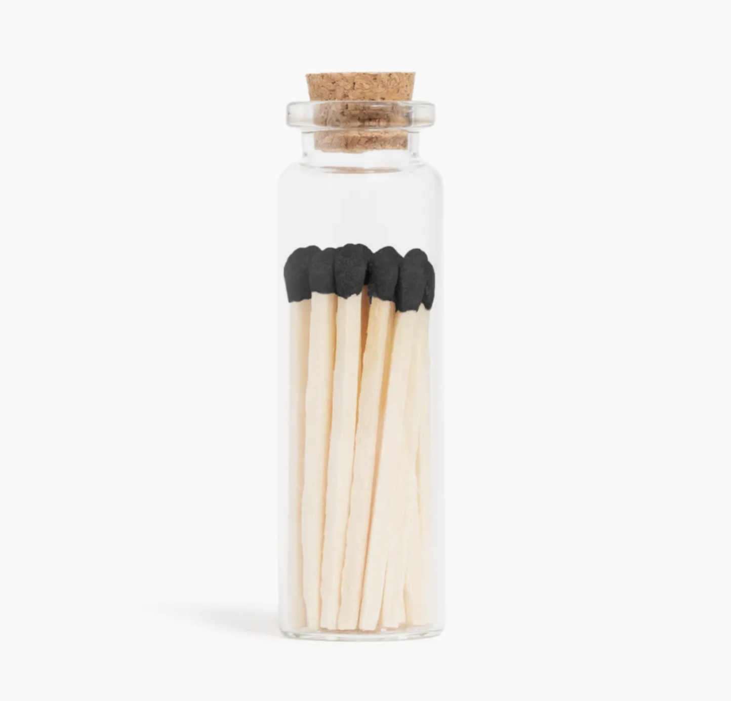 Light up your space with color tip matchsticks! Our colorful matches will add a spark of joy to any moment- with many vibrant color options. The corked vials are hand-filled in our studio and come with a handy match striker so you can light up your favorite occasion anytime.